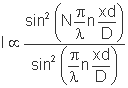 Experiment de Young En aquesta aplicació s'estudien les interferències de Young que resulten de la interacció d'un cert nombre d'ones. La utilització d'una font extensa o de dues fonts puntuals separades entre si permet estudiar també el fenomen de coherència espacial. Finestra "Ona plana" En aquesta finestra s'estudien les interferències de Young que resulten de la superposició de diverses fonts puntuals de llum. Una ona plana incideix sobre un pla que té N escletxes normals al pla del dibuix (representat a la part superior esquerra) i separades una distància d entre si. Cadascun d'aquests forats emet, pel principi de Huygens, ones coherents. Si observem la seva superposició en un pla situat a una distància D del de les escletxes, veiem franges d'interferència normals al pla del dibuix (que es representen a la part superior dreta). Considerem primer el cas N=2 (doble escletxa de Young): si suposem que l'amplitud de les dues ones és igual per a qualsevol punt del pla d'observació, la intensitat de les franges és: on λ és la longitud d'ona de la llum (en el buit) i Δ és la diferència de camí òptic entre les dues ones que han passat per les dues escletxes. Si prenem l'aproximació (pla d'observació prou allunyat), la diferència de camí òptic és: on n és l'index de refracció del medi per on es propaguen i x és un eix paral·lel a la recta on es troben les escletxes. Recordem que d és la separació entre les escletxes i D la distància entre el pla que les conté i el d'observació. Quan la diferència de camí òptic sigui un múltiple sencer de la longitud d'ona hi haurà interferència constructiva. Fixades n, d i D això només depèn de la coordenada x, la qual cosa explica que es vegin franges d'interferència. Les posicions del màxims vénen donades per: on M és un nombre sencer. La distància entre màxims (interfranja) és: Entre cada dos màxims es troba un mínim, per al qual la interferència és destructiva i la intensitat s'anul·la. El programa indica la distància entre màxims i entre mínims que, en el cas N=2, coincideixen. A més, l'aplicació permet variar els paràmetres del sistema i veure l'evolució de la imatge d'interferències corresponent. El color es correspon amb la longitud d'ona seleccionada. Si es vol, prement el botó "Gràfic" es mostra el perfil d'intensitats. Prement el botó "Imatge" es retorna a la imatge de les franges. Aquesta es veu per defecte en escala lineal, cosa que ve indicada amb el botó "Intensitat lineal on". Quan aquest es prem, la intensitat està en escala logarítmica i a dins del botó posa "Intensitat logarítmica on". L'amplada de la finestra gràfica es modifica automàticament per tal de representar amb prou resolució els màxims i mínims de la figura. En el cas que hi hagi N escletxes, la intensitat de les franges pren la forma: Aquesta funció té una sèrie de màxims principals d'intensitat màxima, separats la mateixa distància que abans (Δx). Entre cada 2 màxims principals es troben N-2 màxims secundaris i N-1 mínims, d'intensitat nul·la, i separats entre si: Es pot comprovar com les fórmules per N=2 es redueixen a les del cas "Doble escletxa de Young" que s'ha analitzat anteriorment. Finestra "Coherència espacial" En aquesta finestra s'estudia com varia la visibilitat de les franges d'interferència en l'experiment de doble escletxa de Young quan es canvien les característiques de la font d'il·luminació, per tal d'estudiar el fenomen de coherència espacial. El factor de visibilitat es defineix com: on I M i I m són les intensitats màxima i mínima de les franges, respectivament. Pel que fa a la font d'il·luminació, si en la finestra "Ona plana" les escletxes eren il·luminades per una ona plana, ara hi ha diverses opcions: