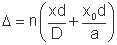Això dóna lloc a una estructura de franges amb la mateixa interfranja que si hi hagués una sola font però menys contrastades. El factor de visibilitat és: on a és la distància entre el pla de la font i el de les escletxes. Com abans, la interfranja no varia però la visibilitat de les franges esdevé: |