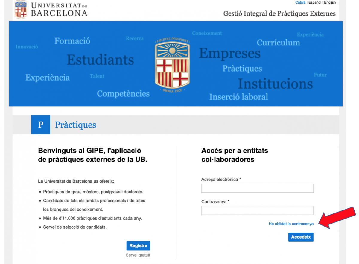 Accediu a l'adreça: http://www.ub.edu/gipe/action/login-entitat