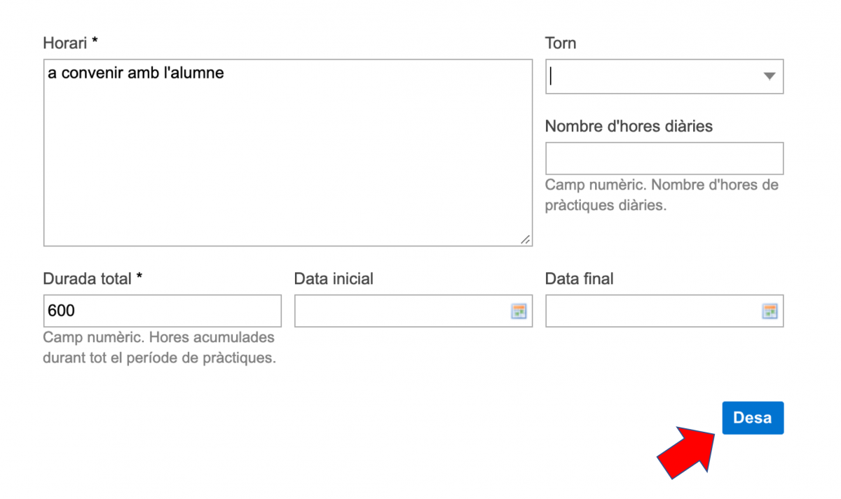 Entreu a l'oferta i reviseu el contingut de tots els camps que poden ser susceptibles a canvi en aquesta renovació de l'oferta, i sempre fer l'acció "DESA" en cada una de les pestanyes (si no, es perdrien els canvis):