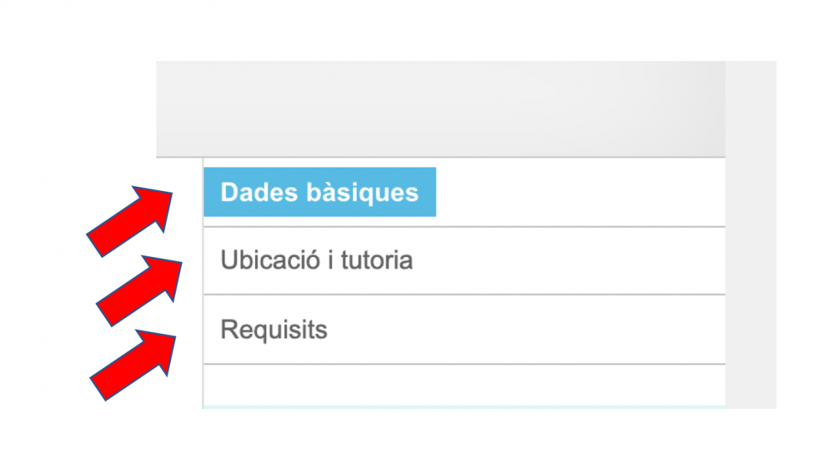 Heu de navegar pels tres apartats necessaris per editar tota la informació (menú superior a la dreta):