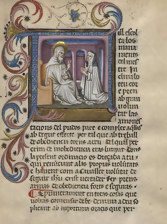 Regla de San Benito traducida por Arnau d’AlfarràsColección: Espacios y prácticas de memoria y construcción de identidad Localización: Biblioteca de la Universitat de Barcelona |