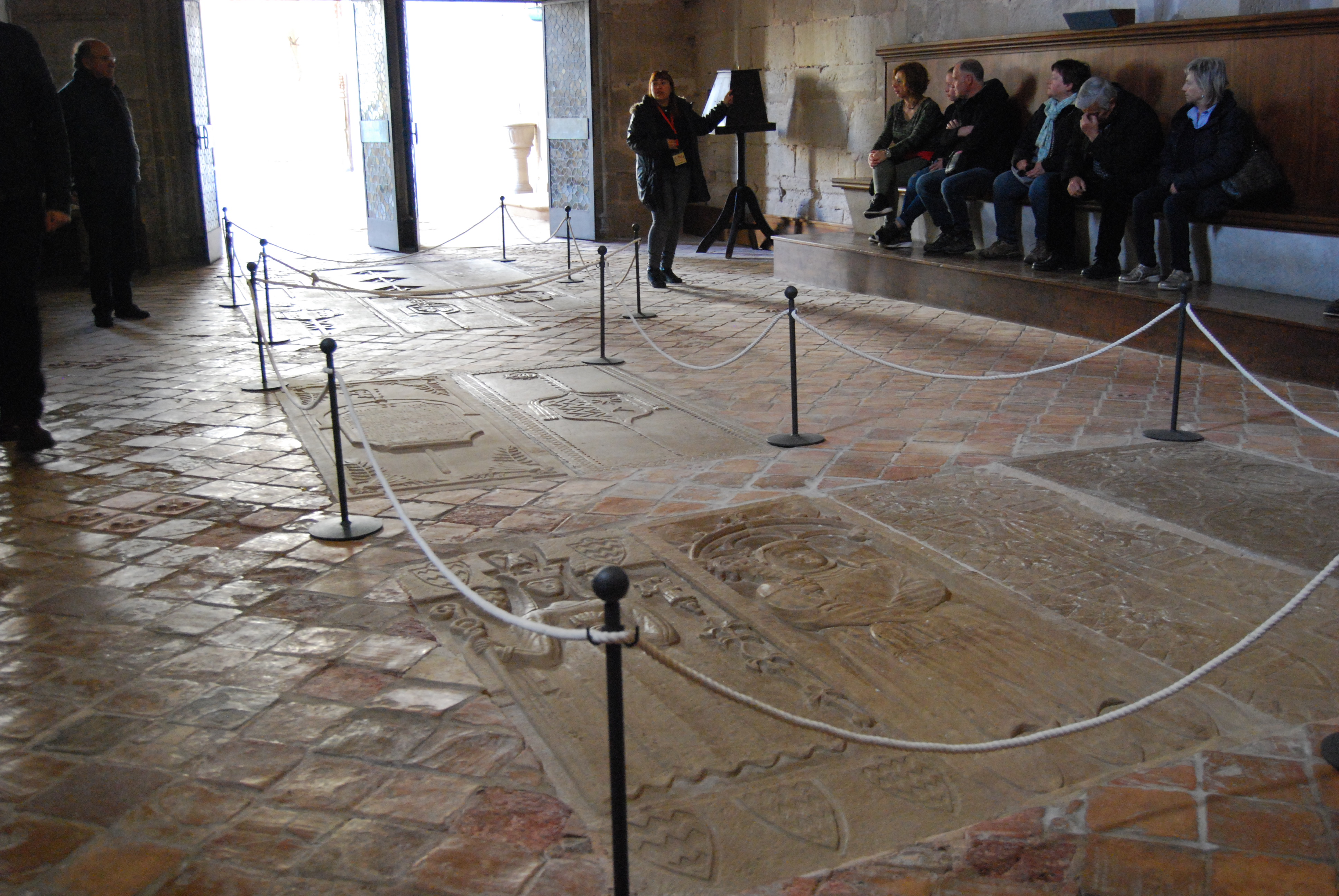 La sala capitular oferia la funció de ser punt de reunió per a la comunitat, amb l’abadessa – en aquest cas – per fer el capítol, és a dir, per recordar les escriptures de la regla adoptada – la de Sant Benet en el cas de Vallbona –, conversar sobre assumptes relatius al monestir i els seus habitants i, a més, era on s'escollia l'abadessa del cenobi. Les reunions es feien generalment després de missa, al matí, a prima. Les monges s’asseien al llarg dels murs seguint un rigorós ordre d’antiguitat. S’acabava l’acte amb la confessió pública de les monges que desitjaven acusar-se a elles mateixes de les faltes comeses o bé denunciar alguna altra companya; en aquest cas se n’havia d’ometre el nom. De fet, actualment la sala capitular encara es segueix utilitzant com a tal per les vuit monges que encara resideixen en el monestir. Així doncs veiem la sala capitular com un punt de trobada per a totes les monges, un lloc de posada en comú de diverses qüestions. Fer-ho en presència de dotze lloses d’antigues abadesses aporta solemnitat tant a l’espai com al propi acte del capítol. No es troben en un lloc de pas, sinó en un espai d’una funcionalitat molt específica. La col·locació de les seves lloses sepulcrals en aquest indret pot respondre a diferents motius: cal centrar-se, primer de tot, en el propi fet de col·locar una llosa decorada sobre la tomba de la difunta. Tant si es fa representant-la, com en el cas d'Eliarda, com si es fa a través de símbols heràldics, el bàcul abacial o inscripcions. La idea és la mateixa. És un acte de construcció de memòria, de record vers el personatge enterrat. Les dotze làpides no es poden entendre com elements individuals, sinó com un conjunt íntimament relacionat de memòria col·lectiva comunitària. Eliarda i les altres difuntes formen part d'una genealogia, d'un abaciologi que les làpides i les pràctiques devocionals ajuden a teixir. Un altre motiu seria el de la possibilitat d’una funció commemorativa davant la tasca que elles un dia van realitzar – el capítol –, o fins i tot de conscienciar a les pròpies monges de la sempre present possibilitat de la mort, de tenir present que aquelles allí enterrades van ser un dia una d’elles, que van viure en el mateix indret. Cal tenir present la funció mediadora del monestir entre la terra i el més enllà; així, al tenir-les presents la comunitat ora per elles.