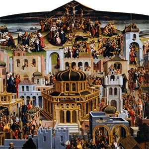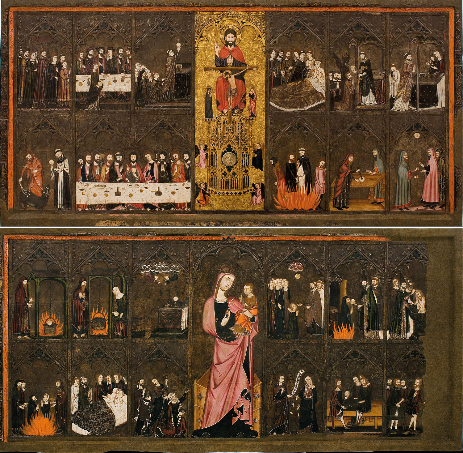 De forma paralela y en parte solapada al desarrollo de prácticas mistagógicas y litúrgicas la vida monástica se impregnó de prácticas devocionales, es decir, de gestos y ritos de veneración hacia figuras principales de la Historia de Salvación y de la hagiografía cristianas. El culto a los santos, la veneración del pesebre o de las escenas de la vida de cristo, el florecimiento del culto mariano se enmarcarían precisamente en este contexto. Lo harían también los objetos, como por ejemplo los manuscritos de procesionarios y otros, dedicados a ritos y performances devocionales (procesiones funerarias, de corpus, dramatizaciones, festividades litúrgicas, en especial, las celebraciones-representaciones de los ciclos de Navidad y Pascua. Estas devociones responderían a veces a un especial favor hacia una figura determinada por parte de la comunidad, con un sentido que apela a todos sus miembros y al vínculo que los une, otra veces a la esfera privada de un individuo particular, pero siempre complementando y aumentando los significados del resto de espacios que recoge esta exposición, en un proceso de superposición, más que de complementariedad.