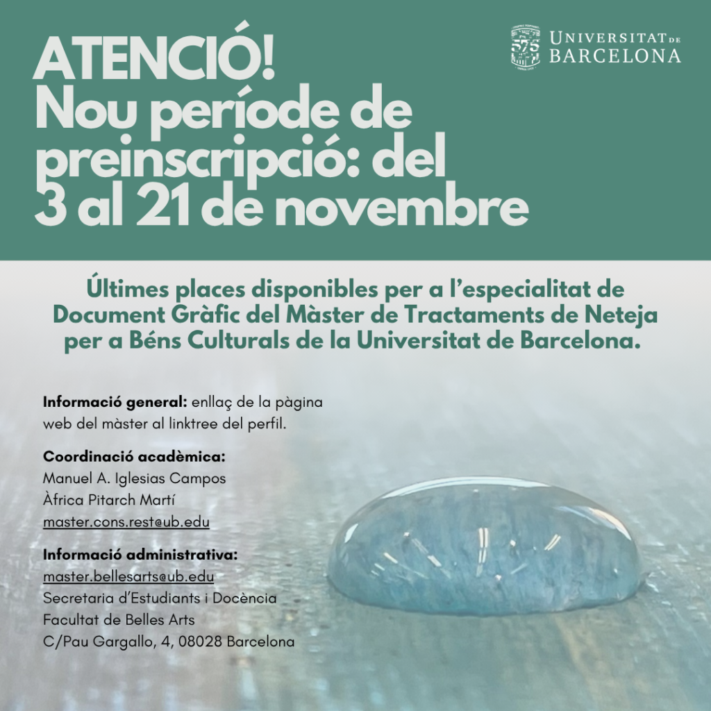 Podeu consultar la resolució de la convocatòria a la Seu electrònica de la UB.