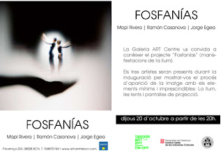 Així mateix, la Galeria ART Centre ens convida a conèixer el projecte «Fosfanías»(manisfestacions de la llum) amb la participació dels artistes i professors de la facultat Ramón Casanova i Jorge Egea.