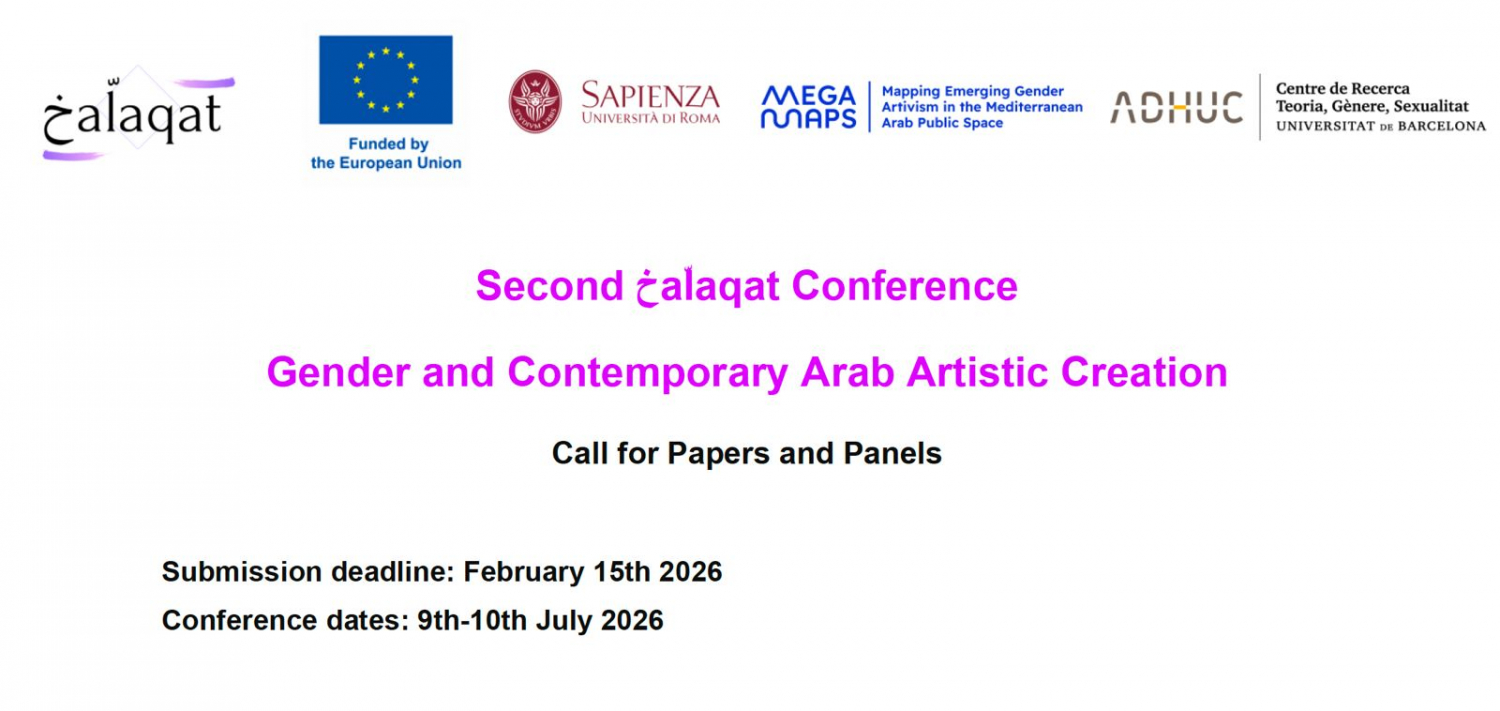 The Second خaّlaqat Conference on Gender and Contemporary Arab Artistic Creation, to be held at Sapienza Università di Roma on 9 and 10 July 2026, brings together researchers, artists, and cultural practitioners from various institutions to share ideas, theories, and research addressing Arab artistic creation from a gender perspective. Participants will explore diverse forms of artistic and creative expression, engaging with innovative and interdisciplinary methodologies designed both to analyse art and to employ it as a methodological and research tool.