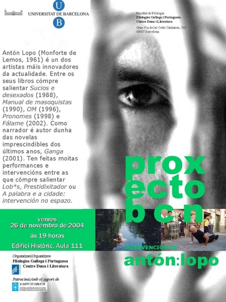 Antón Lopo es un artista innovador, muy conocido por su obra poética y narrativa, con títulos como Sucios e desexados (1988), O libro dos amados (1996), Pronomes (1998) o una de las novelas más originales de los últimos años, Ganga (2001). Ha hecho muchas performances e intervenciones, entre las que destacan Lob*s, Prestidixitador o A palabra e a cidade: intervención no espazo.