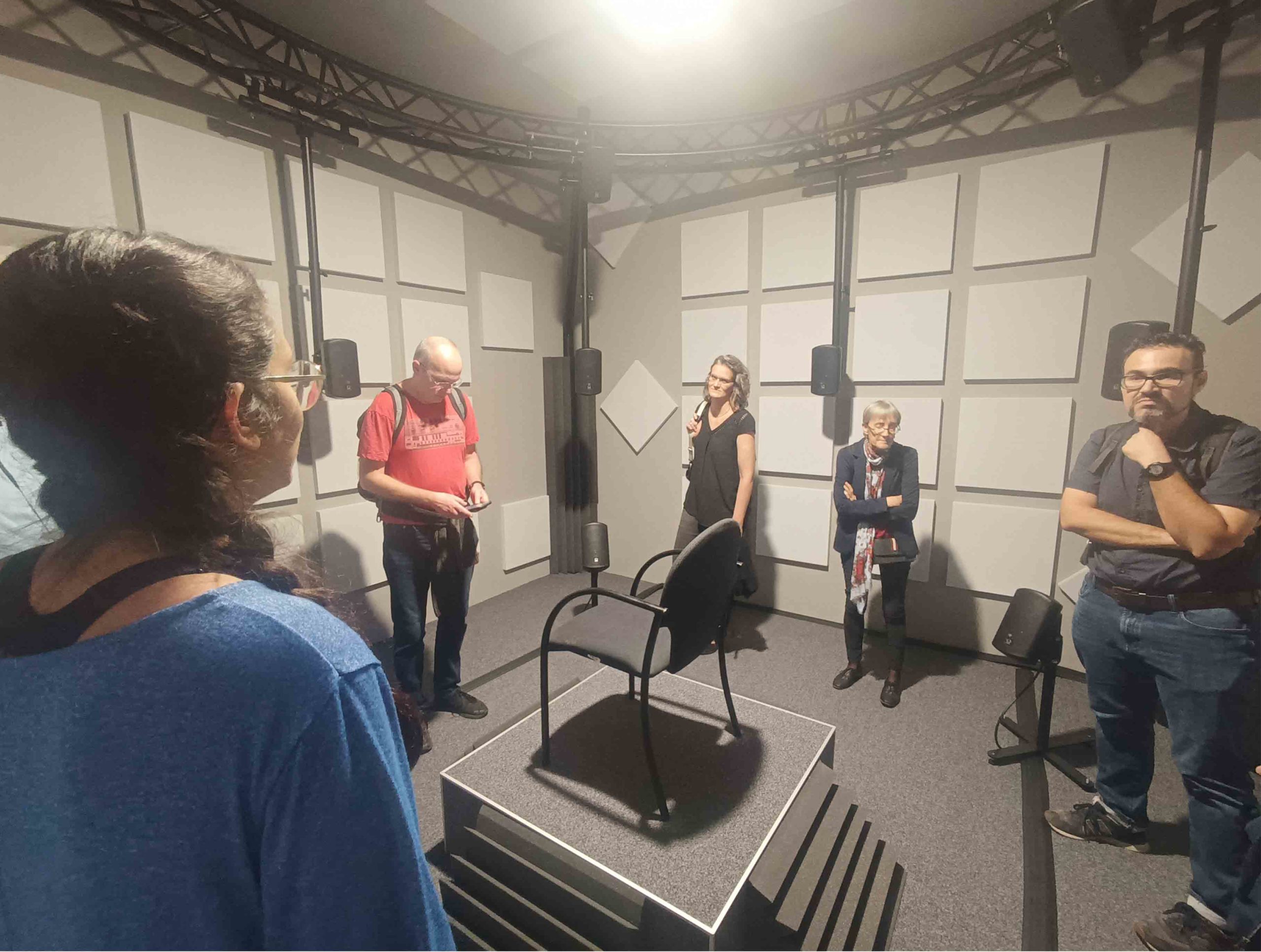 The morning session finished with a visit to the University of Barcelona’s Immersive Psychoacoustic Laboratory (ImmpaLAB) and the Brainlab. Delegates had the opportunity to experience some of the applications of both facilities firsthand, including listening to high-order Ambisonic auralisations of rock art sites and their spatialised ambience recordings.