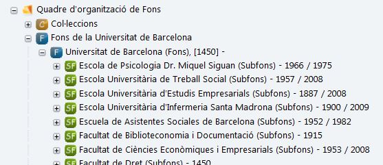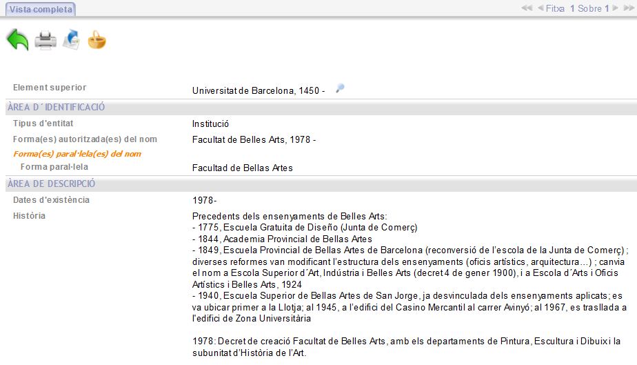 The authority records gives access to the description file of each of the units that produces records and documents at the University of Barcelona.