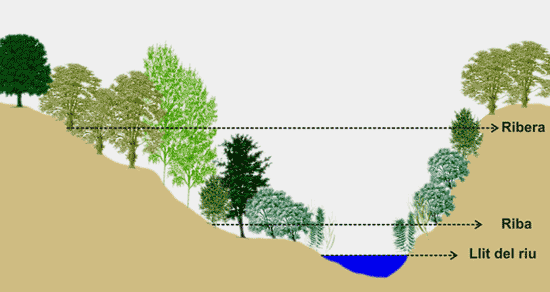 | Representació esquemàtica d'un riu amb la seva ribera |
