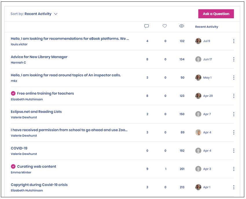 Ask a librarian: és un servei de consulta per a docents i famílies que amb les escoles tancades tenen preguntes sobre recursos educatius que donin suport a l’aprenentatge dels seus alumnes i fills. Funciona com un fòrum i l’equip de bibliotecaris i mestres respon a les consultes que es realitzen.