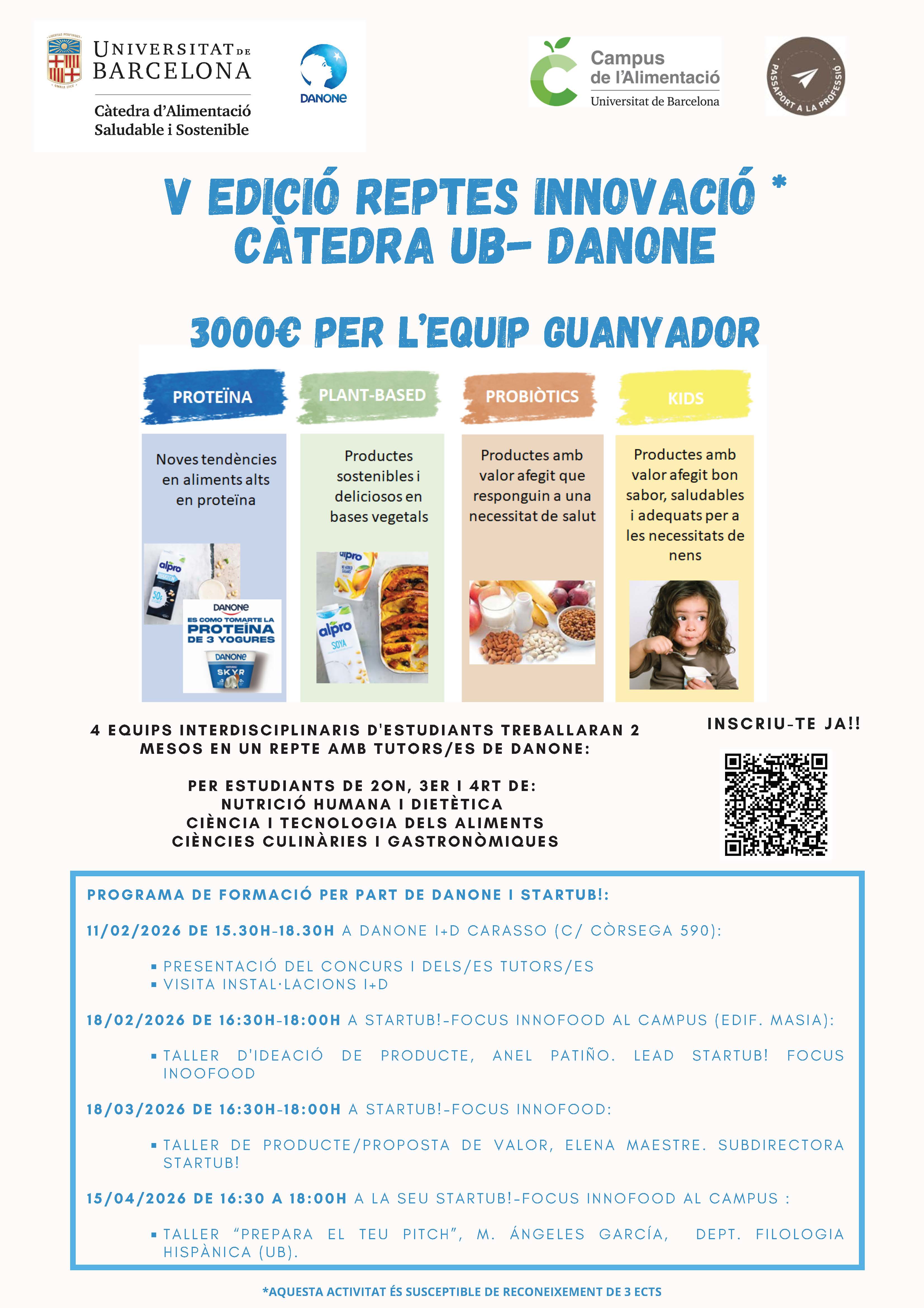 (19/12/2025) OBERTES INSCRIPCIONS a la 5a Edició del Concurs de Reptes Càtedra UB-Danone. INSCRIPCIONS AQUÍ