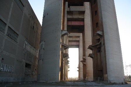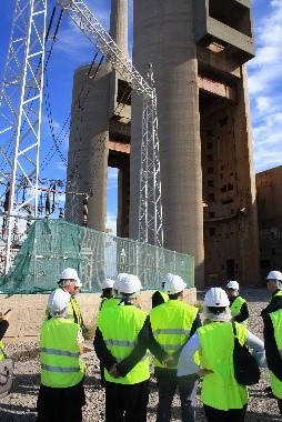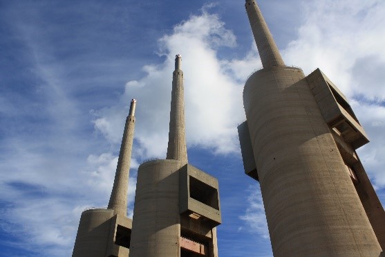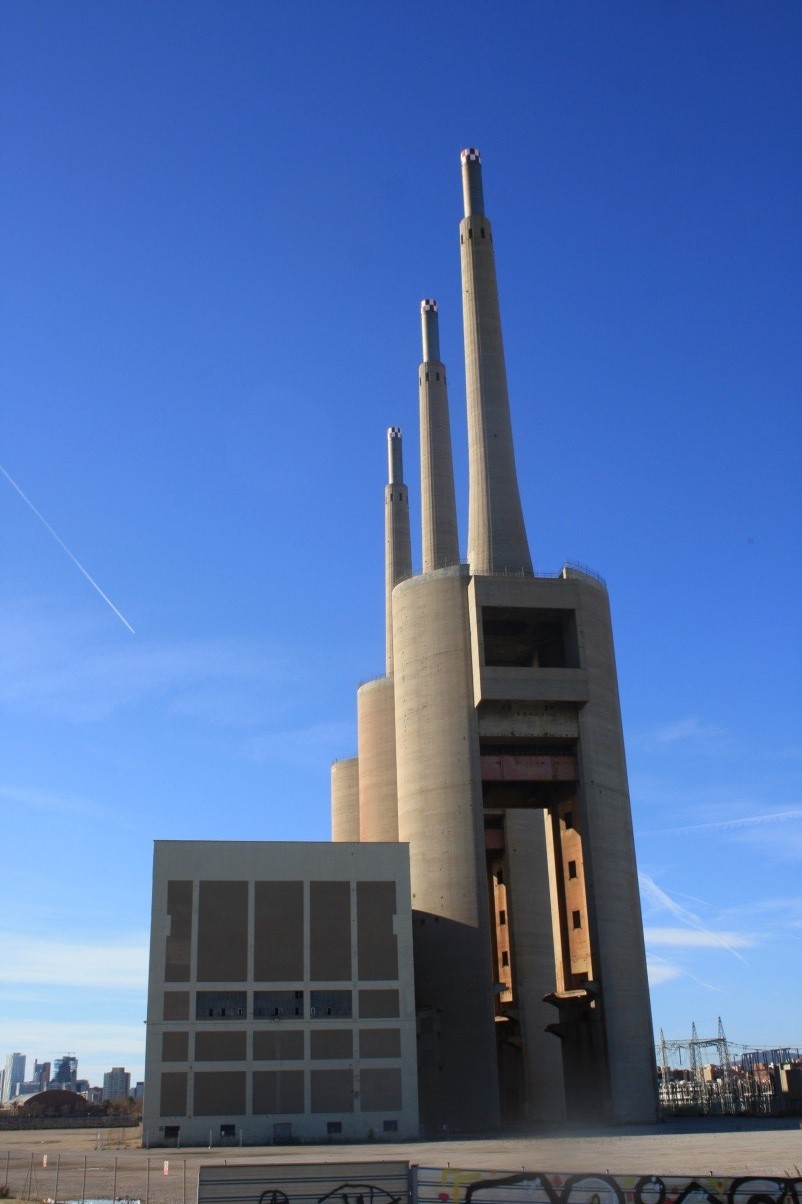 Imagen del Edificio de la Nave de Turbinas y de las Tres Chimeneas de 200 m de altura situadas en el Sector de las Tres Chimeneas. Este sector de 32 ha., Pendiente de aprobación definitiva del PDU, fue identificado por el Grupo liderado por Màrius Rubiralta como sede del proyecto funcional de conocimiento "HUB" que generará y complementará la actividad económica del Distrito de Innovación de 92 ha. adyacente. (Foto Grupo Internacional de Expertos