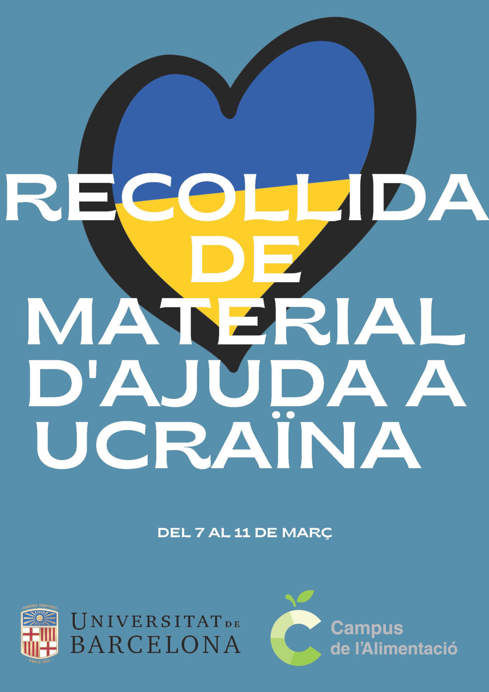 Desde el Campus de la Alimentación queremos contribuir a las campañas de solidaridad que se están impulsando para ayudar a la población de Ucrania. Por esta razón, durante la semana del 7 al 11 de marzo instalaremos unas cajas frente a los puntos de información de todos los edificios para que, quien lo desee, pueda hacer donación de alimentos o material de ayuda humanitaria que haremos llegar los puntos de recogida oficiales habilidades.