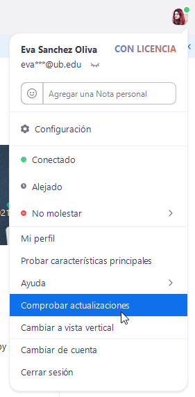 2) A la cantonada superior dreta trobareu un requadre amb la vostra fotografia de perfil. Feu clic i seleccioneu "comprobar si hay actualizaciones":