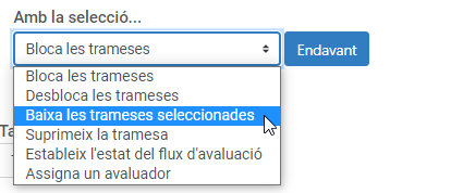 Aquesta extensió permet descarregar tots els documents. Des de la unitat, hem fet proves i podem assegurar que funciona correctament. Un cop descarregada, s'inclourà una icona en forma de fletxa a la cantonada superior dreta del navegador. Adreceu-vos a la pàgina on estiguin penjades totes les trameses dels alumnes i, un cop allà, feu clic a l'extensió i seleccioneu, al menú desplegable, l'opció DownThemAll!: