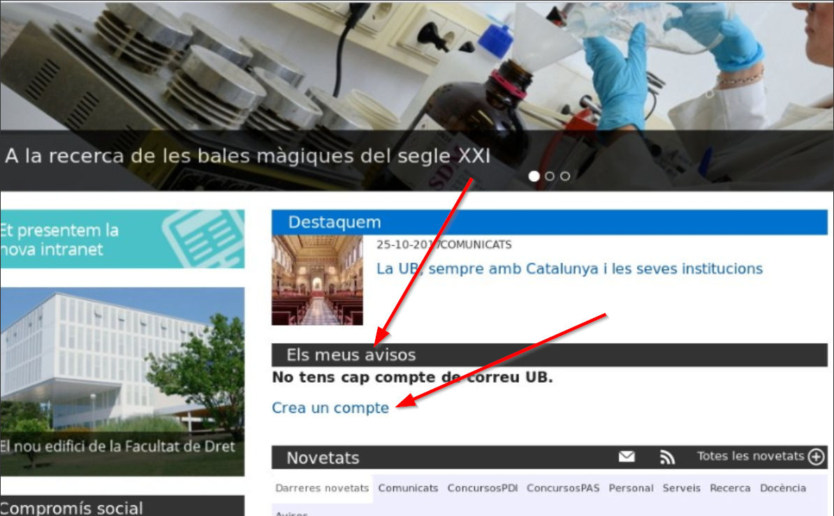 Un cop dins, dins de l'apartat "Els meus avisos", fes clic a l’enllaç “Crea un compte”.