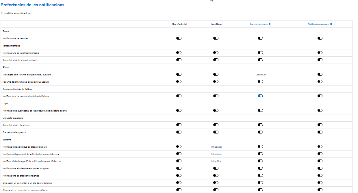 Per tal de desactivar la rebuda de notificacions del Campus Virtual haureu de seguir les següents passos:
