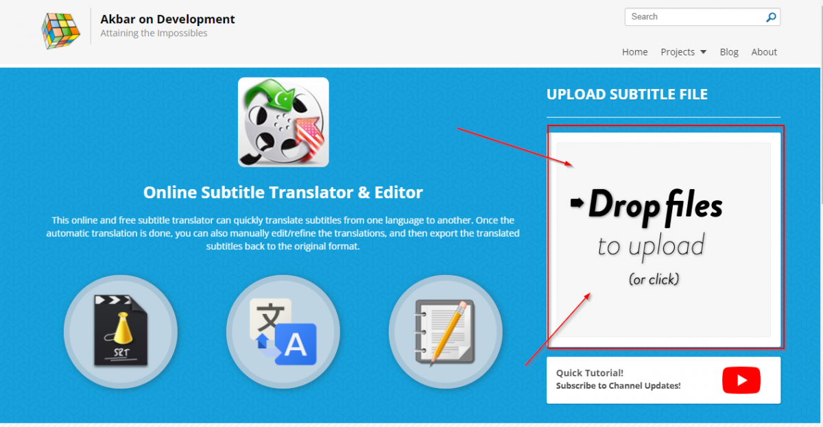 Per traduir la transcripció, entreu al web http://www.syedgakbar.com/projects/dst i arrossegueu el fitxer dins del requadre que hi ha a la part dreta, sota el nom Drop files to upload: