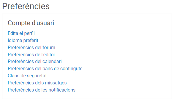 Seguidament, s'obrirà una pàgina en la que podreu configurar les preferències del vostre compte d'usuari: