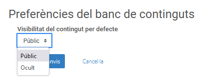 Preferències del banc de continguts: aquesta opció permetrà configurar si la visibilitat del contingut per defecte és pública o no:
