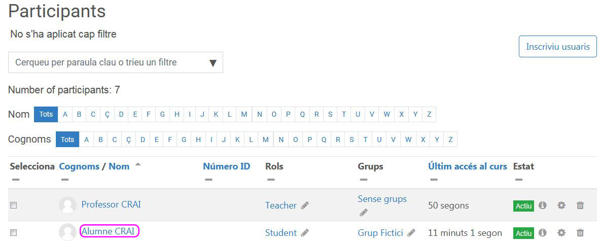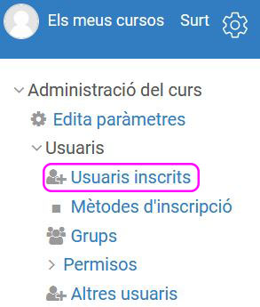 Ens situem al menú d'Administració  i seleccionem primer Usuaris i després Usuaris inscrits.