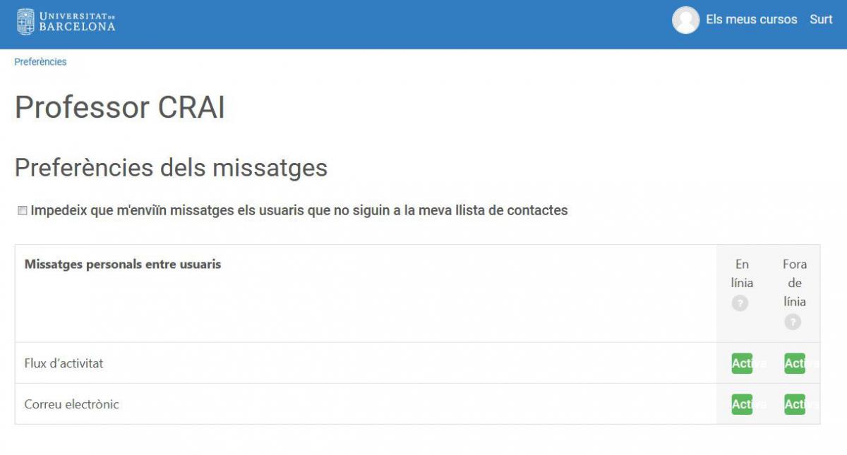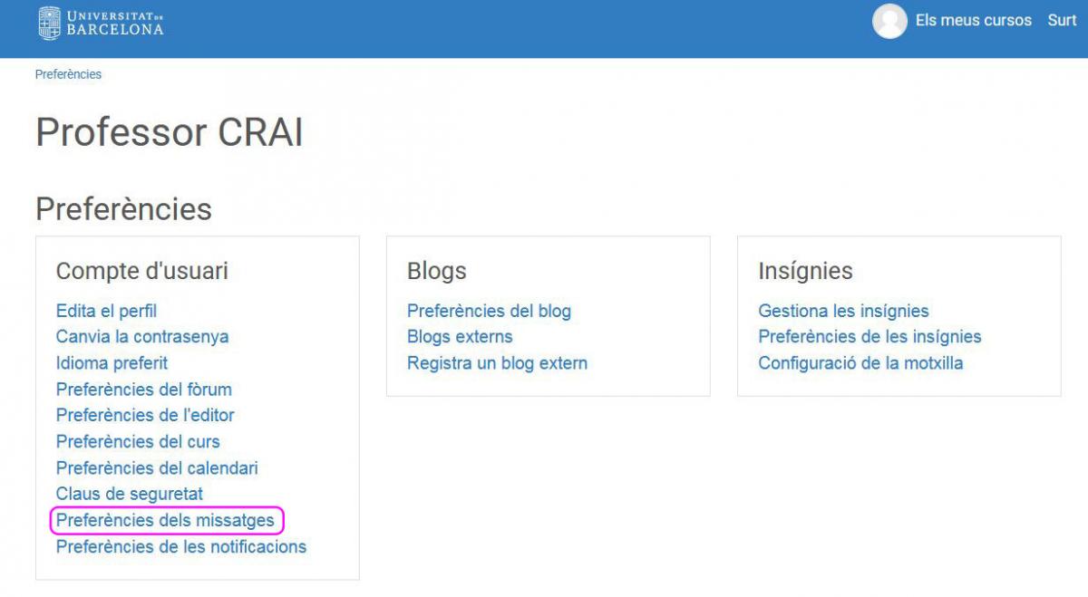 Finalment des del nostre compte podem configurar les Preferències dels missatges.
