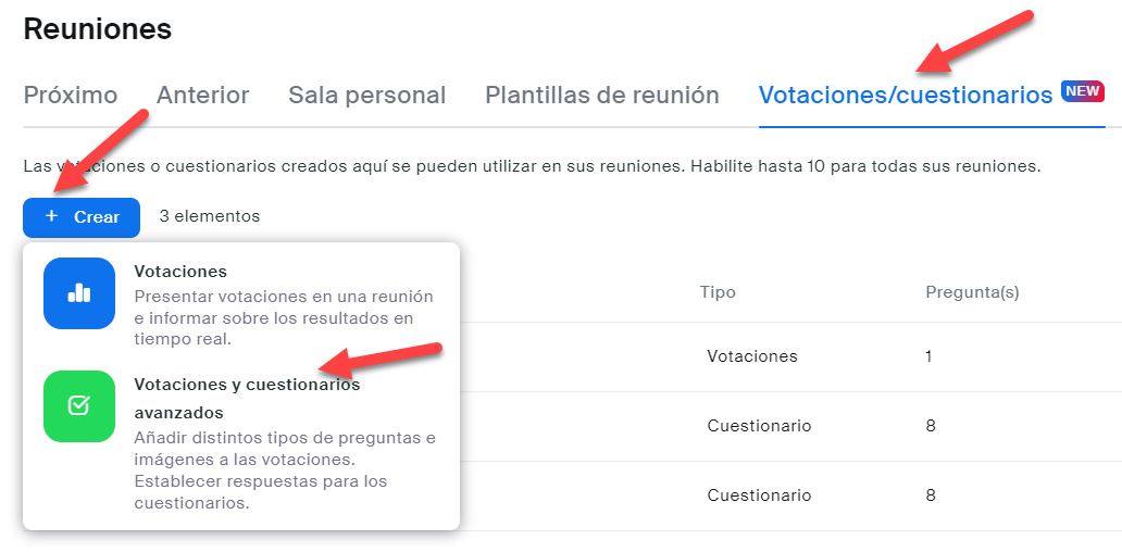 - Permitir que los anfitriones creen votaciones y cuestionarios avanzados.