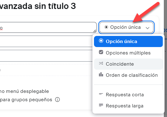 - Opción única: els participants a l'enquesta només poden seleccionar una de les respostes proporcionades. Les possibles respostes es poden enumerar totes alhora o en un menú desplegable.