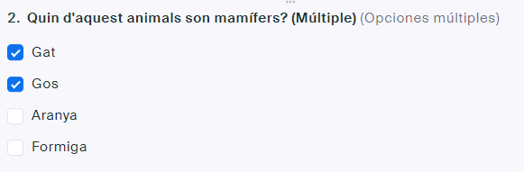 - Opciones múltiples: els participants a l'enquesta poden seleccionar diverses respostes proporcionades.