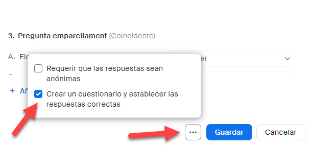- Crear un cuestionario y establecer las respuestas correctas: consulteu la secció següent per a més detalls.
