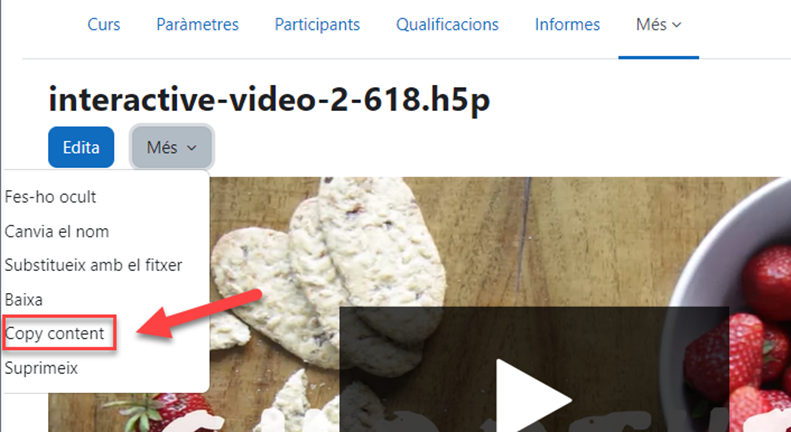 Ara podem copiar contingut H5P al banc de contingut per poder adaptar una activitat amb més facilitat.