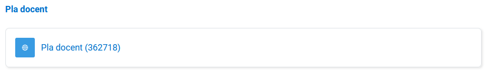 Per defecte, quan es crea un curs al Campus Virtual UB vinculat a una assignatura, aquest sempre incorporarà un enllaç que portarà, directament, al Pla Docent actualitzat. Tot i que el professorat pot moure aquest enllaç on vulgui del curs, normalment aquest recurs es troba a la primera secció de l'aula virtual, i té un aspecte semblant a aquest:
