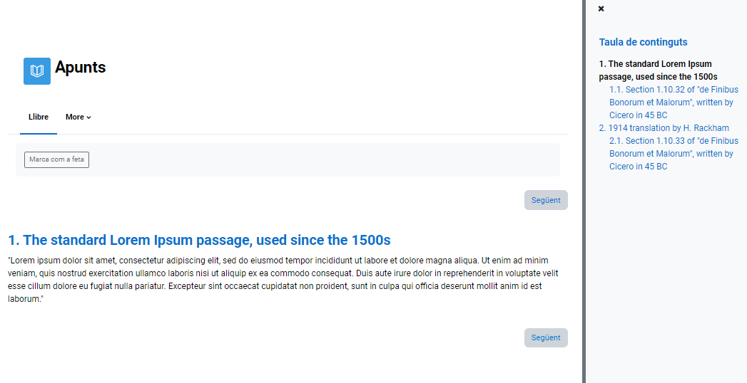 Llibre: aquest mòdul permet al professorat crear un recurs de diverses pàgines en format de llibre, amb capítols i subcapítols. Els llibres poden contenir fitxers multimèdia, així com text, i són útils per a mostrar llargs passatges d'informació que es poden dividir en seccions: