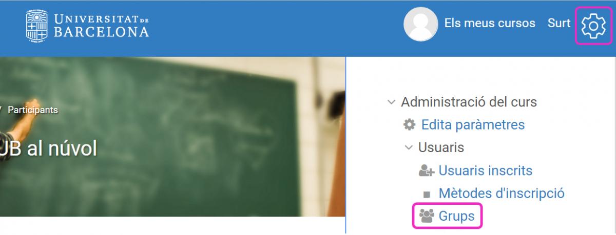 1. Go to the main page of the course and click on the Groups option (located on the right hand side of the toolbar inside the gear icon):