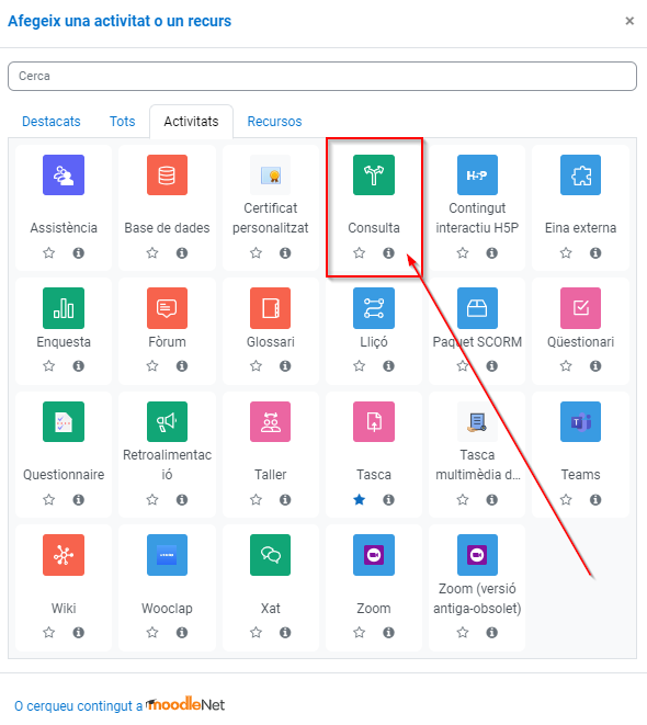 Guía de uso donde se explica qué es, cómo crear y configurar la actividad Consulta del Campus Virtual UB.