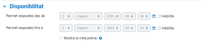 Muestra la vista previa permite que el alumnado vea las opciones antes de que la consulta se active y se pueda rellenar.