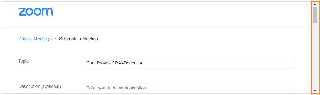 Es recomendable que esta sea la única actividad de zoom en el curso, ya que todas "apuntan" al mismo sitio, en este caso al planificador de zoom donde iremos añadiendo las diferentes sesiones. Así pues, un nombre, lo más genérico posible, sería muy recomendable.