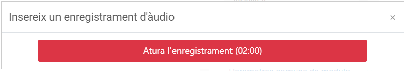El editor de texto/HTML de los cursos del Campus Virtual UB permite grabar hasta dos minutos de voz/audio/vídeo.