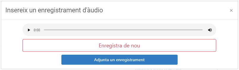 - Al clicar "Adjunta una grabación", a continuación se verá ya añadido al cuerpo del texto: