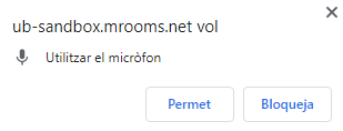 - Ambas opciones pedirán acceder al micro y/o cámara de nuestro navegador, por ejemplo, con la grabación de audio (navegador Chrome):