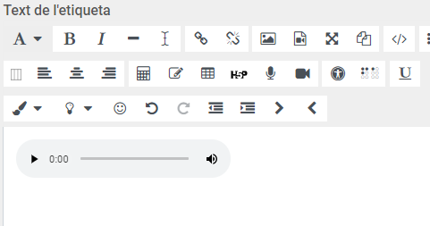 - Una vez hecho esto, abrimos cualquier recurso y/o actividad donde figure la barra del editor, se mostrarán las dos opciones que permiten realizar la grabación: