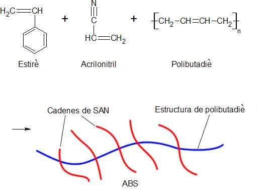 Ja que el ABS és relativament econòmic i aporta una resistència a l'impacte superior al PVC, s'utilitza per realitzar barrejes i aleacions de polímers, anomenadesblends, donant nous plàstics com ara el blend d'ABS i PVC (Ronfaloy de DSM), ABS amb PC (Bayblend T de Bayer) o ABS amb PA (Triax de Monsanto). També es fan blends d'ABS amb elastòmers de poliuretà o amb polisulfones.
