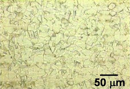 Monel deformat en fred i posterior recuit. Grans equiaxials amb bandes de deformació. S`observen precipitats molt fins de fase gamma prima-Ni3(Al,Ti)- i macles de recuit.