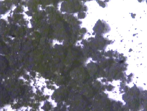 En la micrografía anterior se observa una distribución heterogenia de una fase mayoritaria (matriz) y una minoritaria (precipitado). las grietas observadas son debidas al tratamiento de oxigenación que necesita el superconductor una vez sintetizado, para obtener la fase superconductora.