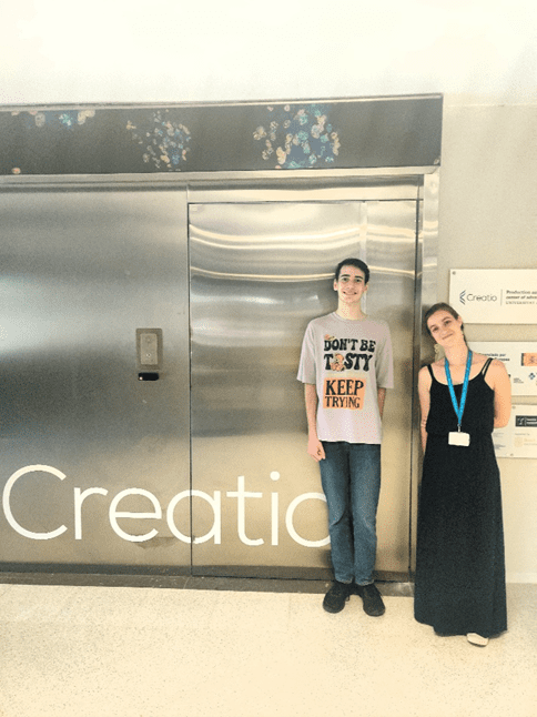 Student Víctor Pérez (left) with Creatio researcher Alice Louail in the Creatio facility at the University of Barcelona.