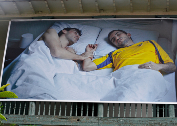 Fotografía en la que el artista aparece junto a Eric aparentemente dormidos en una cama, ataviado con una camiseta del equipo ecuatoriano de fútbol. Se trata de una pieza ligada a su vida personal y comprometida con la lucha por los derechos de la comunidad gay en el Ecuador y que hace referencia a la obra de González Torres -Sin título (1992) expuesta en una valla en New York. A pesar de la escena íntima, la disposición de los cuerpos y el plano casi cenital en la fotografía sugiere cierto aire teatral. Concebida en principio como valla publicitaria, puesto que no obtuvo los permisos institucionales necesarios para su exhibición en el espacio público, sólo fue expuesta en el recinto expositivo de la Bienal Internacional de Cuenca. Esta obra censurada representa el trabajo más polémico en la carrera del autor.
