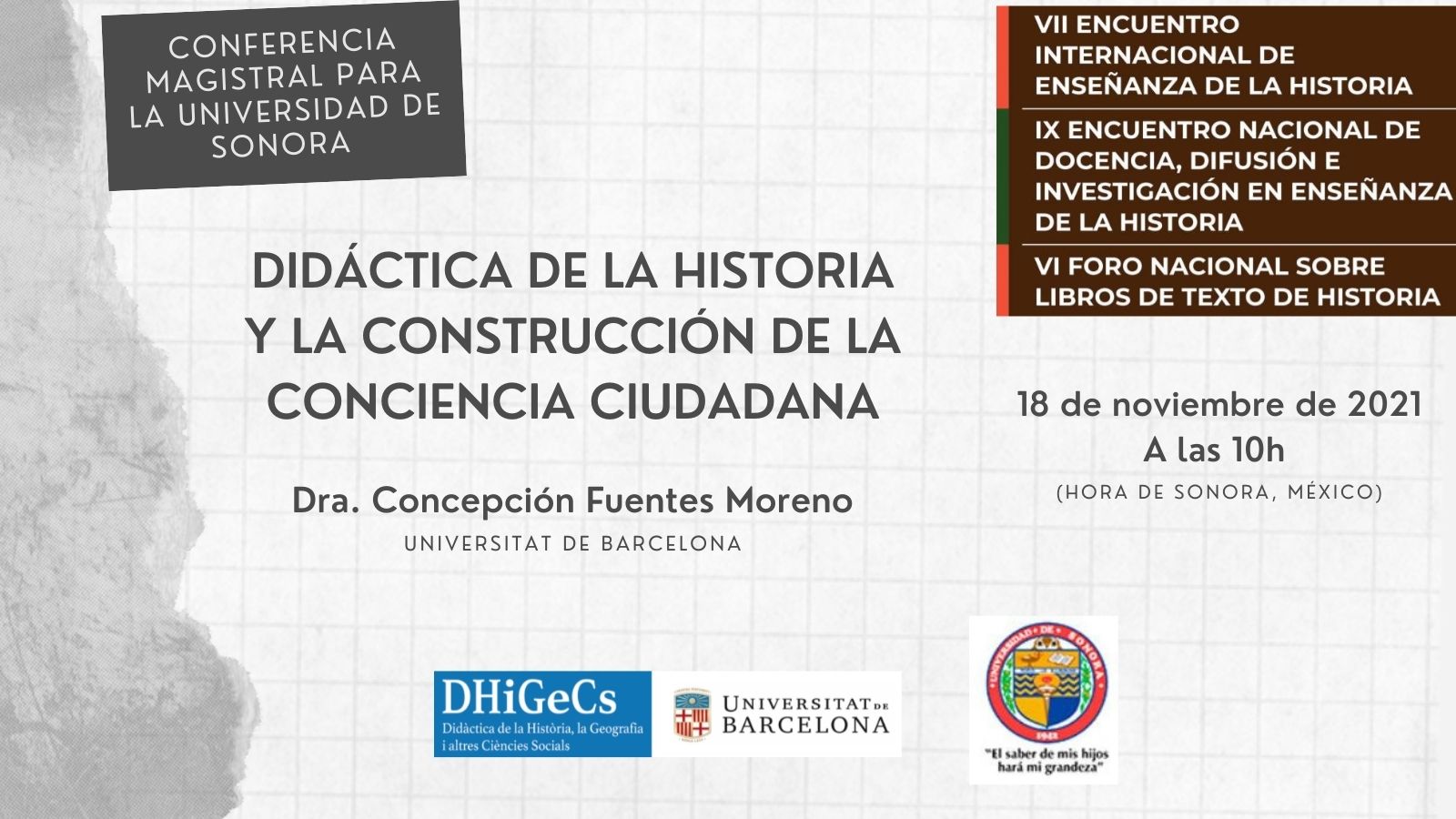 El 18 de novembre a les las 10h (hora de Sonora, Mèxic), la Dra. Concepción Fuentes donarà la conferència magistral “Didáctica de la historia y la construcción de la conciencia ciudadana” dins el VII Encuentro Internacional de Enseñanza de la Historia que organitza la Universidad de Sonora. Us deixem l’enllaç a la web de l’esdeveniment … Llegiu més