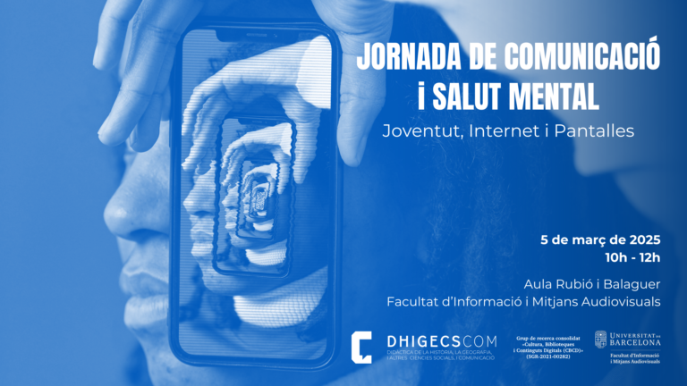 El día 5 de marzo de 2025 tendrá lugar la «Jornada de Comunicación y Salud Mental: Juventud, Internet y Pantallas» organizada por la Facultad de Información y Medios Audiovisuales de la Universidad de Barcelona, el grupo de investigación DHIGECS-COM, el grupo de investigación CBCD y el CRICC de la Universidad de Barcelona.